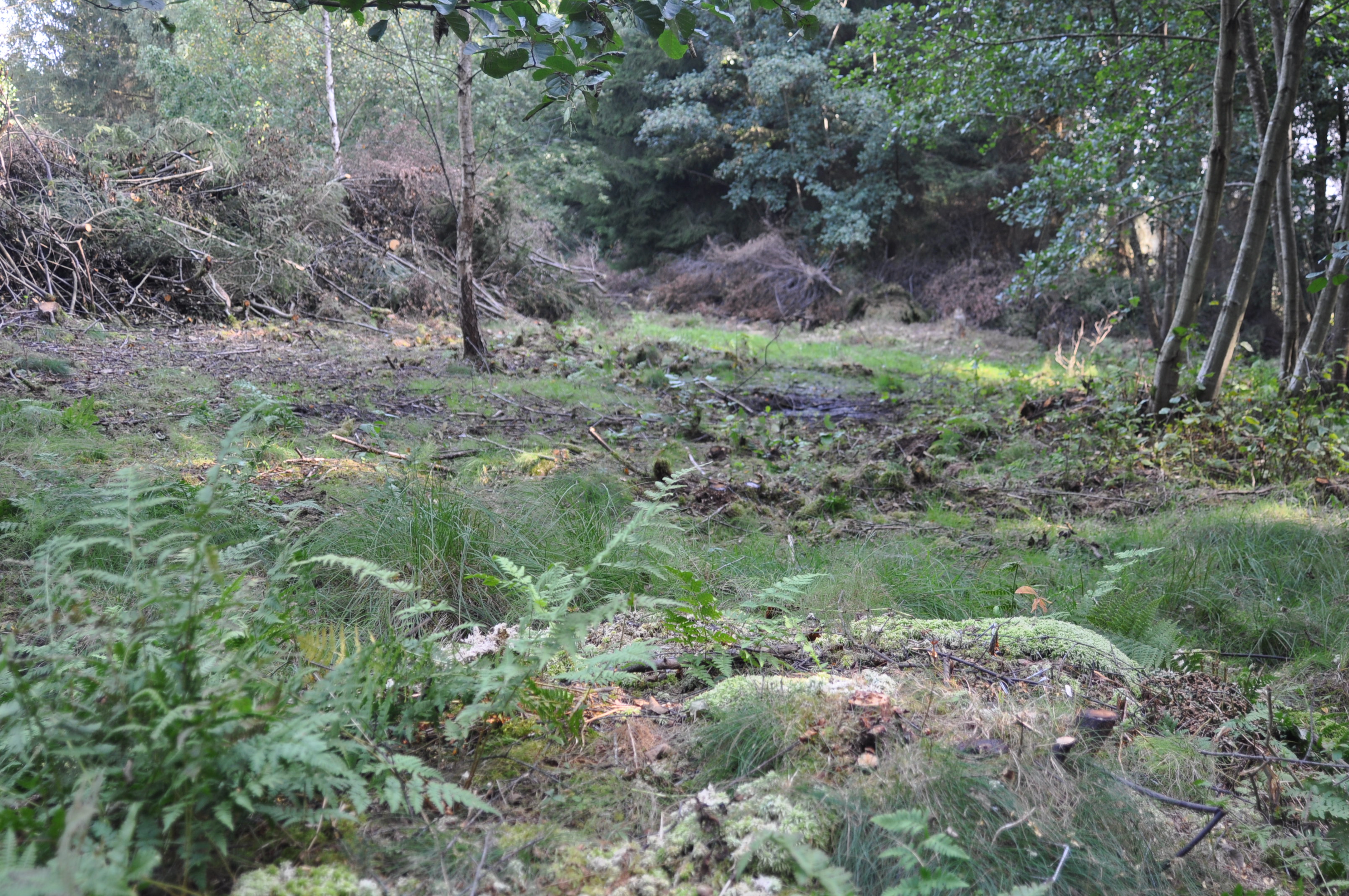Ein 10m breiter Gehölzgürtel sowie einzelne Kiefern und Erlen in den Pflegezonen blieben erhalten. Folgen werden kleinere Maßnahmen. Klein aber oho, denn sie können erheblich zur Wiedervernässung des degradierten Niedermoors beitragen. So zum Beispiel durch den Verschluss des nördlich des Moors verlaufenden Grabens.
