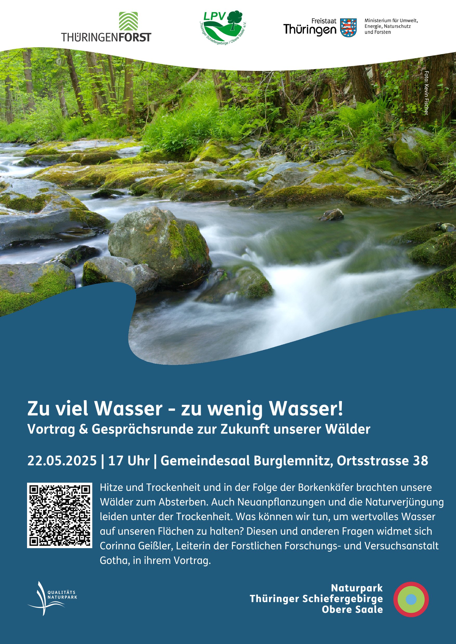 Seien Sie uns willkommen zu unserem nächsten Vortrags- und Gesprächsabend im Vorhaben „Unser Neues Sormitztal“ am 22. Mai 2025! Im Gemeindesaal Burglemnitz sprechen wir zu dem Thema „Zu viel Wasser – zu wenig Wasser!“ mit Corinna Geißler, Leiterin des Forstlichen Forschungs- und Kompetenzzentrums Gotha.